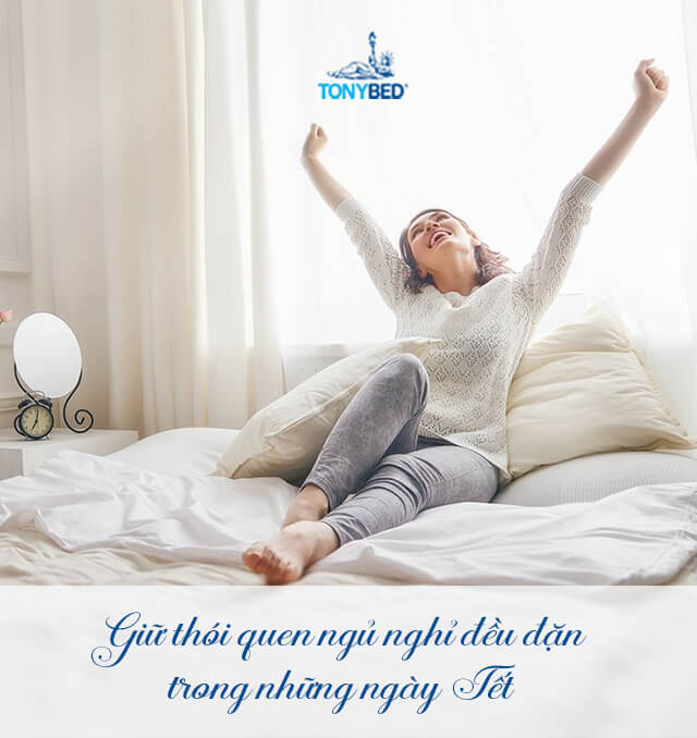 Bạn nên đi ngủ và thức dậy vào cùng một thời điểm mỗi ngày, kể cả vào những ngày Tết. Thời gian ngủ lý tưởng cho người trưởng thành là từ 7-8 tiếng mỗi đêm.