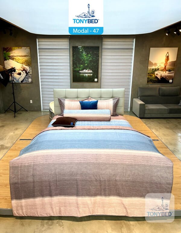 Với chăn ga gối vải Modal của Tonybed, bạn sẽ trải nghiệm giấc ngủ chất lượng và sự thoải mái tối ưu cùng với thiết kế tinh tế và tính thẩm mỹ cao cấp.