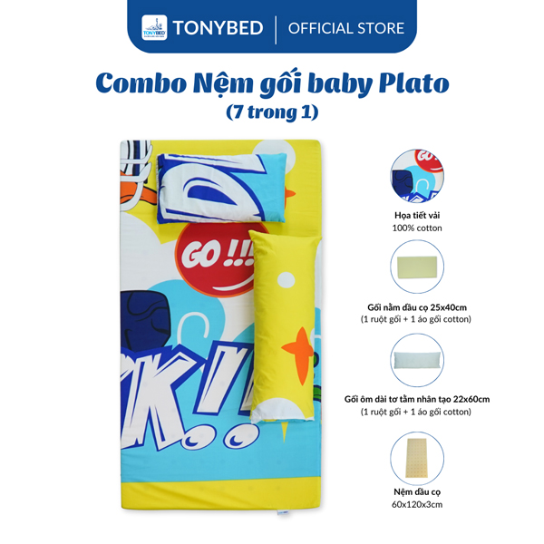 Nếu ba mẹ đang tìm bộ nệm chăn gối đi học hoàn hảo cho con, bộ nệm gối baby Plato gấp gọn 7 trong 1 thông minh của Tonybed sẽ là lựa chọn tuyệt vời. Sản phẩm được thiết kế với tấm dầu cọ lành tính, êm ái, có lỗ thông hơi của Tonybed là sự lựa chọn hoàn hảo cho giấc ngủ an lành và thoải mái của bé yêu. Đồng thời sản phẩm được sử dụng chất liệu vải 100% cotton cực kỳ lành tính cho làn da của bé và bền lâu. Tonybed sẽ là người bạn đồng hành tuyệt vời cùng con đến lớp.