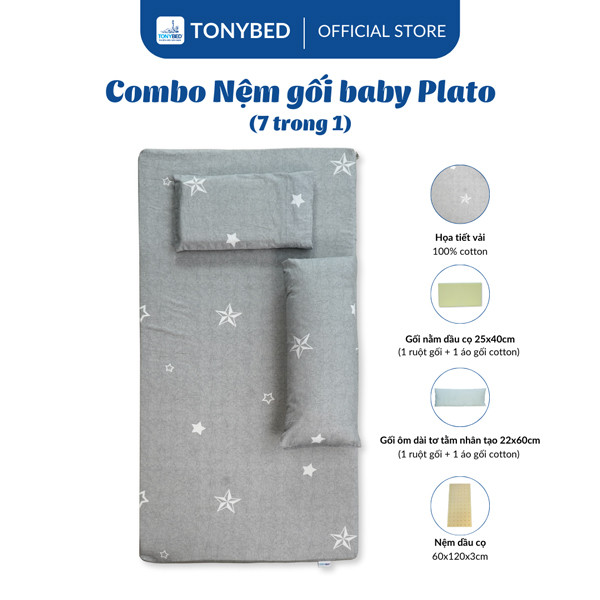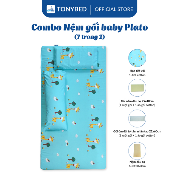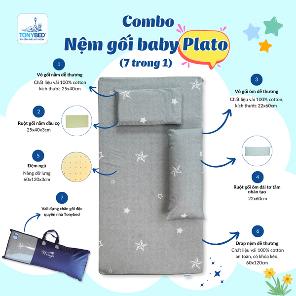 Trọn bộ nệm gối baby Plato gấp gọn 7 trong 1 thông minh và tiện lợi của Tonybed bao gồm: