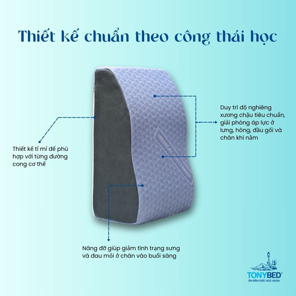 - Duy trì độ nghiêng xương chậu tiêu chuẩn, giải phóng áp lực và cảm giác khó chịu ở lưng, hông, đầu gối và chân khi nằm