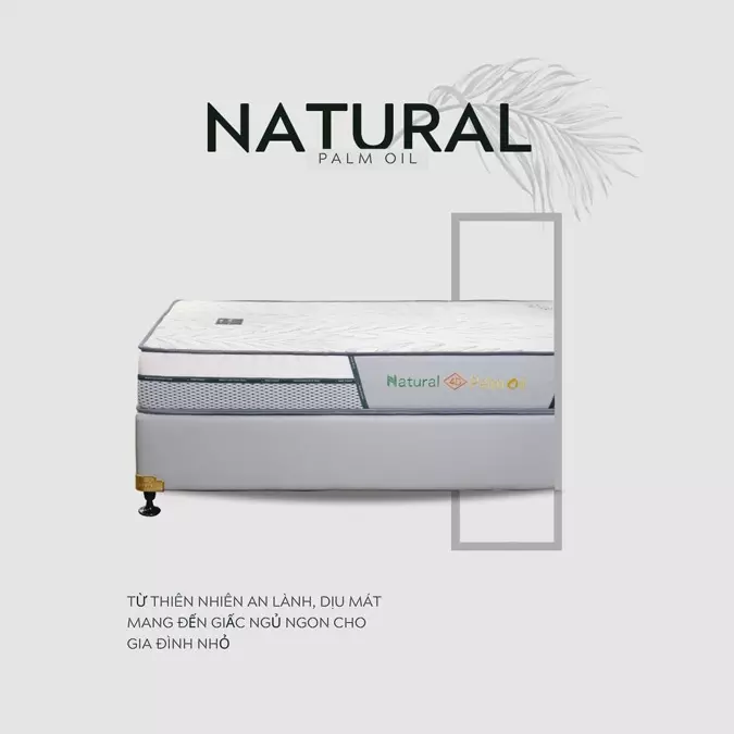 - Ruột nệm: chứa tinh dầu cọ nguyên chất nhập khẩu trực tiếp từ Malaysia, áp dụng công nghệ tiên tiến nhằm tạo ra sản phẩm có độ đàn hồi và êm ái tương tự như nệm cao su.